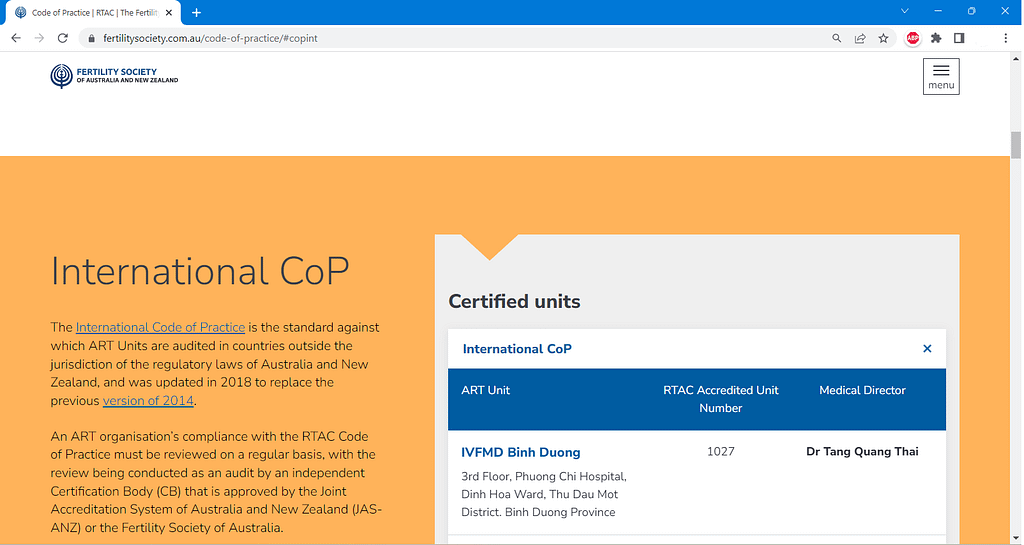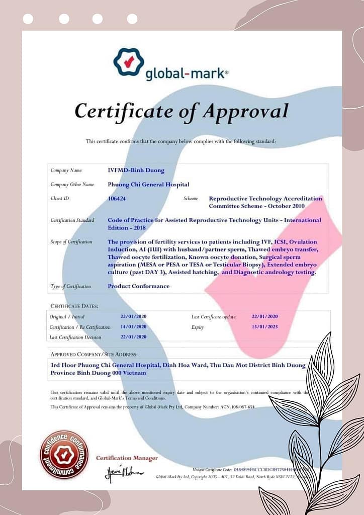 Xúc tiến hạng mục Đơn vị Hỗ trợ sinh sản, Thụ tinh trong ống nghiệm. Lập hồ sơ và tổ chức chuẩn bị thẩm định IVF Mỹ Đức Bình Dương, và đạt Chứng nhận RTAC